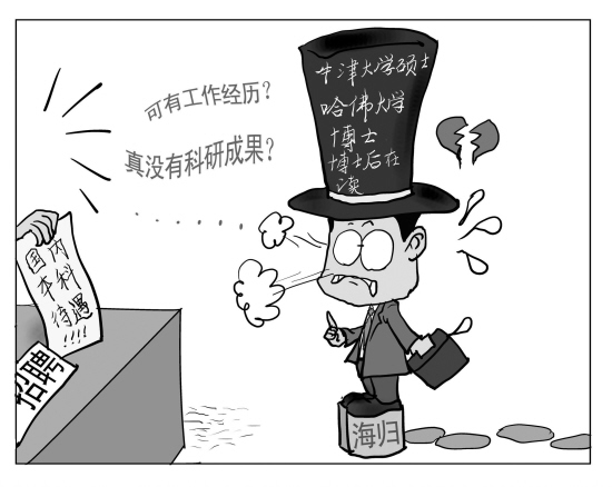 而資深人力資源專家表示,現(xiàn)在的企業(yè)老總,看著海歸有點犯難。