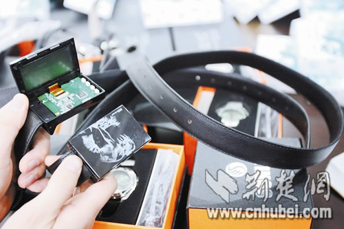 皮帶也能偽裝成作弊設(shè)備:皮帶頭其實是接收器,旁邊設(shè)有一個開關(guān),打開后可以向外翻下一個液晶屏。