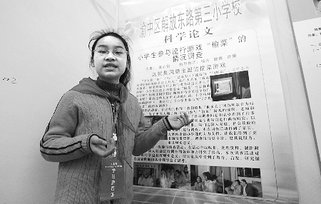 華龍網(wǎng)訊(記者 紀(jì)文伶)“請(qǐng)問(wèn)你經(jīng)常偷菜嗎?”10歲的梁心怡走遍了學(xué)校、網(wǎng)吧、社區(qū),將這個(gè)問(wèn)題重復(fù)了數(shù)百遍。她可不是閑著沒事干。渝中區(qū)解放東路第三小學(xué)五年級(jí)的這個(gè)小姑娘花費(fèi)半年多時(shí)間發(fā)出300份問(wèn)卷調(diào)查,本月寫下近6000字論文——《小學(xué)生參與流行游戲“偷菜”的情況調(diào)查》,在我市25屆青少年科技創(chuàng)新大賽中獲創(chuàng)新大獎(jiǎng)。