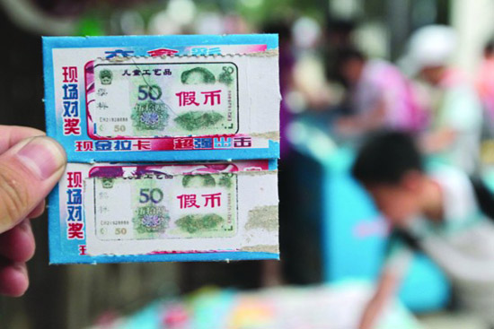 一位店主告訴記者,她以前也賣只中現(xiàn)金的“學(xué)生彩票”,但那種“彩票”一來銷售比較麻煩,二來聽說不允許出售,就改賣這種“玩具獎(jiǎng)”。但只中現(xiàn)金的“彩票”更好賣。