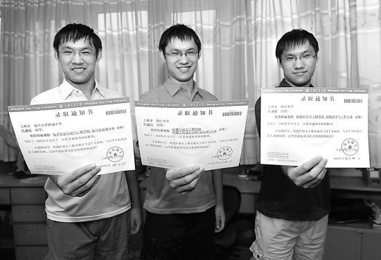 今年高考錄取階段發(fā)生了一樁稀罕事,也是大喜事:滬上三胞胎兄弟,齊齊考入上海交大。老大葉誠明,被電氣信息專業(yè)錄取;老二葉誠亮,被機(jī)械工程專業(yè)錄;老三葉誠輝,被材料科學(xué)專業(yè)錄取。親戚朋友們都很興奮,表示祝賀,三兄弟卻挺平靜:“我們只是發(fā)揮了正常水平,考進(jìn)名校也是在意料之中。”