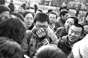 昨天的北大自主招生面試考場設(shè)在文史樓。上午11時,第一批面試完的考生走出考場。尚在等待下午和今天面試的考生,隨即圍上來打聽考題的風(fēng)格。據(jù)考生介紹,同時進(jìn)行面試的有12個考場,面試過程中是五人一組,三名評委。在面試中要先抽題,上午的題目共12道,考生有兩次抽題機(jī)會,如果第一次抽到的題目不太有把握,還有第二次抽題的機(jī)會,但第二次抽題之后就只能答這一題,不能再反悔。