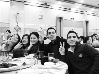 “ 這個(gè)是基圍蝦,那個(gè)是甜湯”,已經(jīng)在華中大MBA漢語(yǔ)班學(xué)習(xí)了一年半的黎巴嫩小伙子Chadi專門為自己起了個(gè)中文名字——夏小龍。雖然是第一次參加中國(guó)式團(tuán)年飯,但在他所在的那一桌,儼然一個(gè)中國(guó)通,不時(shí)給同桌留學(xué)生報(bào)菜名,回答他們的疑問(wèn)。他笑著告訴記者,他很喜歡吃中國(guó)菜,在家鄉(xiāng)時(shí)也常去中式餐館吃飯。現(xiàn)在就像過(guò)自己國(guó)家的節(jié)日一樣,很happy(快樂(lè))。