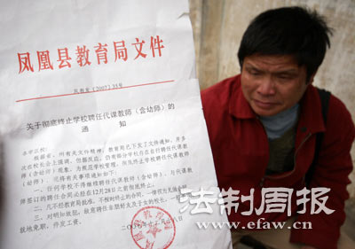 “根據(jù)有關(guān)精神,為規(guī)范學(xué)校管理,徹底終止學(xué)校聘任代課教師……必須在2007年12月28日之前讓代課教師走下講臺(tái)!崩闲iL(zhǎng)含淚念出教育局文件的內(nèi)容,心如刀絞。