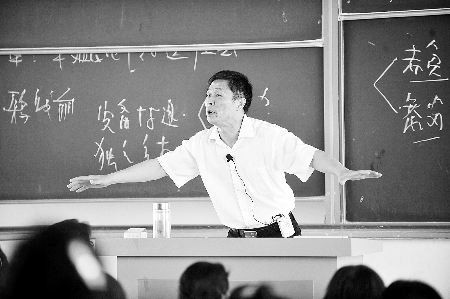 學(xué)生鐘鑾城:大一時(shí)周教授教我們“中國革命史”。生動的小故事,信手拈來的詩句,豐富適當(dāng)?shù)谋砬,各種肢體動作,配上抑揚(yáng)頓挫的聲調(diào),如果加個(gè)響木,周教授的課堂就是講評書的茶館了。大一結(jié)束,周教授贏得一個(gè)學(xué)生私下加封的“綽號”——“周鐵嘴”。