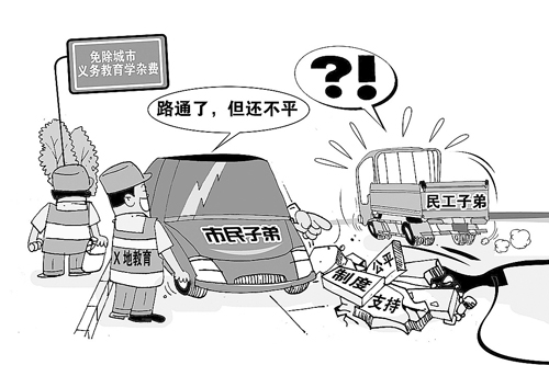 其二,公辦學校為主解決民工子弟的入學問題雖能保證教育的初始公平,但很難彌合深層次的教育不公難題。主要表現(xiàn)有三:一是學校擔心接受農(nóng)民工子弟過多,會影響學校生源和教育質(zhì)量;二是城里孩子不愿與他們同桌、同玩、同學習;三是城市學生家長認為孩子與外來務工人員子女一起學習會影響孩子成長。這些問題不解決,即使免除農(nóng)民工子弟的學雜費,也很難保證免費義務教育落到實處。