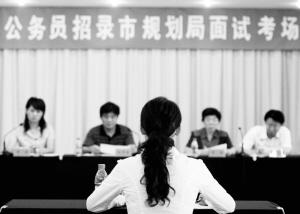 市人事局公務(wù)員管理處處長張?jiān)鱿榻榻B,此次面試的一個(gè)特點(diǎn)就是程序規(guī)定嚴(yán)格。從考生進(jìn)場、考官評分記分、當(dāng)場成績到題本封存上報(bào),都嚴(yán)格按照省人事廳制定的《面試工作紀(jì)律》和《面試工作人員職責(zé)》來進(jìn)行。