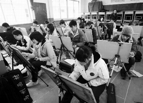 28日,山東省首次美術統(tǒng)考開考,5.4萬考生赴考。由于統(tǒng)考將使考生的機會相比去年有所減少,考生感覺“壓力比去年的考生大”。對于今年的統(tǒng)考試題,部分考生認為“不容易” ,一些高中教師認為“題目較為科學,能夠充分考查考生的綜合專業(yè)水平”。