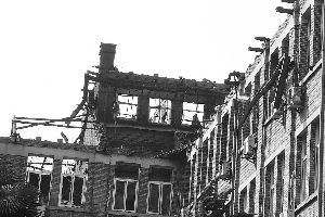 陽光透過燒成空洞的樓頂和窗戶照下來,讓人心情格外沉重。
