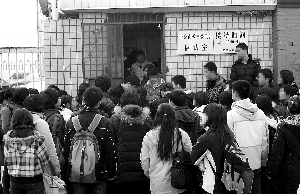 昨日上午,近60名北二外繼續(xù)教育學(xué)院的學(xué)生聚集在北京市教委門前。近日,該院公布部分學(xué)種的報(bào)考生,只有在基礎(chǔ)英語(yǔ)總評(píng)成績(jī)70分以上(含70分)的才允許報(bào)考英語(yǔ)專業(yè)四、八級(jí)考試。此舉引起部分學(xué)生不滿(本報(bào)22日曾報(bào)道)。
