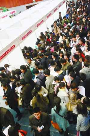 今天上午,首都師范大學(xué)體育館召開2009年中小學(xué)教師專場招聘會,1000個教師崗位面向應(yīng)屆畢業(yè)生現(xiàn)場招聘。招聘信息引來眾多應(yīng)聘者,盡管工作人員將每排人數(shù)調(diào)整為6至10人,進(jìn)場隊(duì)伍仍然排出七八百米長。