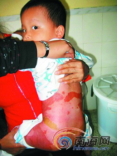 小志的母親黃春秀對(duì)記者說(shuō),她和丈夫楊昌奇不久前從定安來(lái)到?诖蚬ぃ诹x興街租房居住,幾個(gè)月前把小志從定安接到海口,但又沒(méi)時(shí)間照顧孩子,就把他送進(jìn)了附近的育才幼兒園,平時(shí)小志在幼兒園食宿。10月14日晚上,她突然接到幼兒園電話說(shuō)孩子被燙到了。她和丈夫立刻趕到187醫(yī)院,看到孩子被燙掉的皮粘在被子上,非常慘。