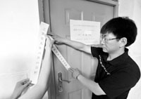 昨天一大早,不少家長帶著考生前往各考點(diǎn)校 “踩點(diǎn)”,熟悉送考路線。雖然是周末,不知因?yàn)橄掠,還是10萬個(gè)考生家庭齊出動(dòng),昨天部分路段出現(xiàn)擁堵。有家長表示,明天出門還要增加點(diǎn)富裕時(shí)間。在去北京市九中的路上,記者遇到一個(gè)考生和他的父親。父子兩人一邊走一邊標(biāo)記,哪兒能停車,哪段路比較窄容易堵,走哪條路線更近,每段路大概要花多長時(shí)間,一一注明。這位父親設(shè)計(jì)的送考路線用時(shí)甚至精確到了分鐘。
