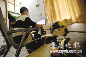 記者看到,程程用電腦在聊QQ,并能熟練地下載免費電話撥打。“他打電腦基本是自己學的!崩紫壬f,因為家庭原因,程程幾乎沒讀書。