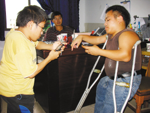 “我們殘疾大學(xué)生的能力不比正常人差,為什么不干點(diǎn)事情出來(lái)呢?”謝江海鼓勵(lì)李浩在大學(xué)里積極進(jìn)取,努力學(xué)習(xí)。一旁的李浩不斷點(diǎn)頭,為自己多了一個(gè)大“哥哥”感到高興。
