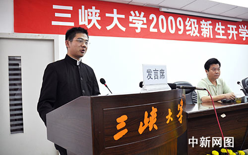 中新網(wǎng)宜昌10月9日電(記者 郭曉瑩)10月9日下午,三峽大學(xué)為包括“最牛作文考生”周海洋在內(nèi)的5名新生舉行了一個簡短而隆重的開學(xué)典禮,至此,周海洋正式就讀于三峽大學(xué)。