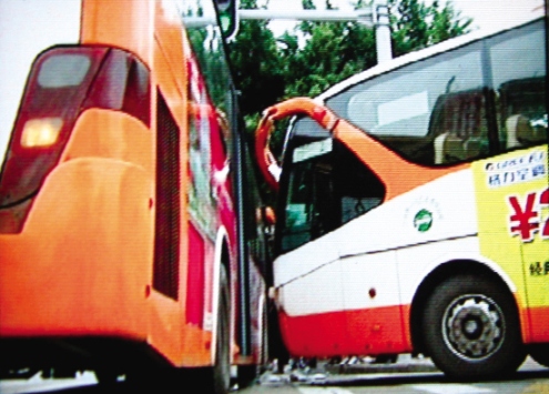 呈90度角“狹路相逢”的兩輛公交車,生生夾死了剛剛下車的18歲女大學(xué)生。