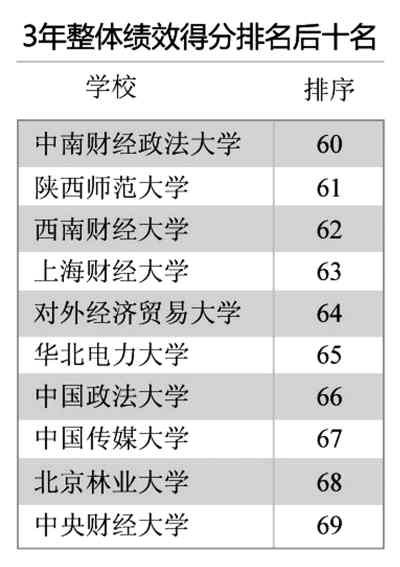 數(shù)據(jù)統(tǒng)計(jì)顯示:有近半數(shù)高校過去3年“投入多,產(chǎn)出少”;另有29所高!爱a(chǎn)出高于投入”;還有7所高校投入和產(chǎn)出的排名一致,“投入產(chǎn)出相當(dāng)”。整體績效得分前3名的高校分別是清華大學(xué)、北京大學(xué)、東北大學(xué)。