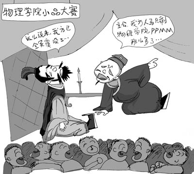 臺(tái)上煞有介事地表演著,臺(tái)下的已經(jīng)捂著肚子笑出了眼淚,喝彩聲起哄聲起伏不斷——這不是崔永元和趙本山在春晚的節(jié)目,而是清華大學(xué)材料系頗為經(jīng)典的一部惡搞班劇——《昨天今天明天》。這個(gè)戲自2003年出爐以來(lái),一直火到現(xiàn)在,成為了清華大學(xué)班劇的“標(biāo)桿”。