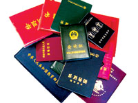 說著,周女士拿出來大小不一、顏色不同的證件十余本,摞在一起足有20厘米高。記者看到,里面除了幾個(gè)專業(yè)證件,還有“涉外秘書資格證”、“廣告從業(yè)資格證”、“健美操證”等。但諷刺的是,她現(xiàn)在從事的工作卻和其中任何一個(gè)證書都沒有關(guān)系。