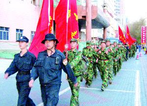 “腳底磨出水泡也要繼續(xù)走!”5月9日,晚上9點,一支徒步隊伍途經市中心的西大橋路段,身穿迷彩服的年輕教官對已經走了12個小時、50多公里的50多名學員大聲地喊著。隊伍中的學員最小的12歲,最大的19歲,他們統(tǒng)一穿著迷彩服,3名新學員皮膚略顯白皙外,其余的學員臉上都有陽光暴曬后的痕跡。