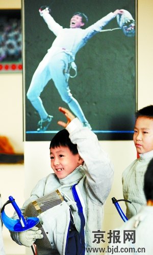 隨著中國運動員仲滿在北京奧運會上成功摘金,服裝帥氣、動作刺激、講究優(yōu)雅的擊劍運動,讓孩子們看得“心癢癢”。于是,奧運會閉幕沒多久,東城體校便從天津擊劍隊請來專業(yè)教練,辦起了北京首個專門面向少年兒童的業(yè)余擊劍班。沒有大張旗鼓的宣傳,教練們在區(qū)內(nèi)的多所小學里轉(zhuǎn)了一圈兒,200多名“小劍客”便主動找上門來。
