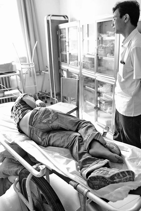 昨日中午12時許,記者在鄭州市第二人民醫(yī)院骨外科見到溫彩霞時,她正獨(dú)自躺在病床上輸液。經(jīng)醫(yī)生診斷,溫彩霞腰、胸部位出現(xiàn)兩處骨折,此外,多處粉碎性骨折。