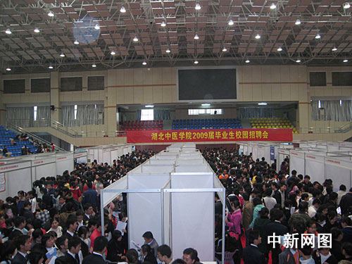 中新網(wǎng)武漢11月22日電 (艾啟平 李飛)為緩解應(yīng)屆畢業(yè)生嚴(yán)峻的就業(yè)形勢(shì),11月22日,由湖北人力資源中心(方陣人力資源集團(tuán))、湖北中醫(yī)學(xué)院聯(lián)合舉辦的免費(fèi)校園招聘會(huì)在該校體育館舉行,來自湖北省內(nèi)外100家醫(yī)療機(jī)構(gòu)、醫(yī)藥企業(yè)、醫(yī)療器械公司等可為2009屆畢業(yè)生提供近1500個(gè)工作崗位。