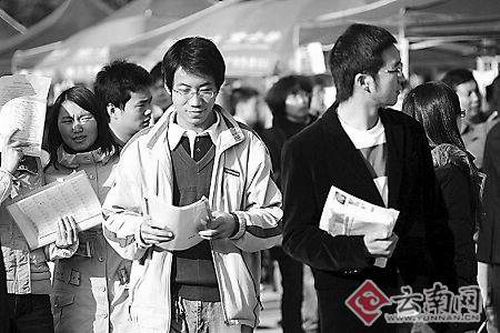 由云南省教育廳主辦的新年第一場高校畢業(yè)生專場招聘會,即全省2009年農(nóng)林類畢業(yè)生和畢業(yè)研究生雙向選擇洽談會,昨天(1月5日)在西南林學(xué)院如期舉行,數(shù)千名畢業(yè)生帶著新年的美好心愿投身求職大軍。和其他招聘會有所不同,此次雙選會主要針對農(nóng)業(yè)類、林業(yè)類院校(專業(yè))畢業(yè)生,其中包括3年內(nèi)未就業(yè)的畢業(yè)生。