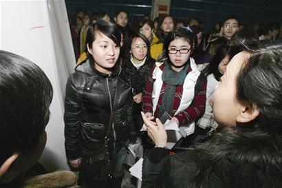 “身高1.6米以上,高中以上學歷,年齡要求30歲以下——”昨日,武漢市公交集團招公交乘務員的展位被不少女大學生圍得水泄不通。據(jù)統(tǒng)計,當天共有300多人應聘,本科、專科、中專、高中等各種學歷都有,其中大專以上的占到了半成。