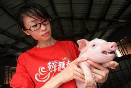 陳潔是廣西融水縣融水鎮(zhèn)人,2007年11月,她利用在江西南昌城市學(xué)院就讀期間的實(shí)習(xí)期回鄉(xiāng)籌建生態(tài)農(nóng)業(yè)科技養(yǎng)殖場(chǎng)。2008年7月大學(xué)畢業(yè)后,陳潔聘請(qǐng)了4名大專學(xué)歷的獸醫(yī)員共同養(yǎng)豬,目前豬場(chǎng)有母豬400多頭,總存欄3000多頭。