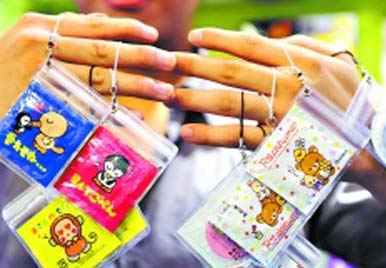 撲克牌的盒子、花哨的足球,看見這些在學(xué)生哥手機上晃晃悠悠的掛飾,誰能想到在花里胡哨的外表下面,藏著的竟是安全套!最近,一股用安全套做手機繩的風(fēng)潮在廣州中學(xué)生中興起,廣州幾大潮流集散地都有專門出售這類手機繩的店鋪。據(jù)了解,這股風(fēng)潮主要從日本傳入,有購買此類掛飾的學(xué)生表示,在手機上掛個安全套能“辟邪”和“招!,更有人直言:“可應(yīng)付不時之需!