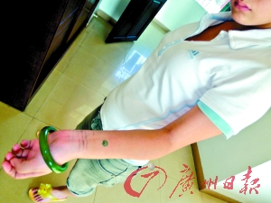 本報訊 (記者盧迎新攝影報道) 15歲花季少女小玫(化名),外表單純可愛,但卻“自割”成癮。從兩年前開始,她常常在課堂上用小刀割自己的手至流血不止,以此來“獲得快感、釋放壓力”。迄今為止,她的手上留下了200多道疤痕,正在廣東省武警總隊醫(yī)院青少年成癮治療中心治療。