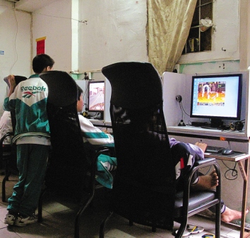 記者走進向西街一巷一間門面窄小的平房,里面悶熱非常卻“硝煙彌漫”,電腦前5個十來歲的學生并排坐著,玩興正濃,額頭上全是汗。墻上沒掛營業(yè)執(zhí)照,只在收銀臺前高懸著“通宵10元,一個鐘2元,會員1.5元”的牌子。