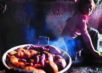 孫家有5畝地,各種一半的紅薯和苞谷,不夠全家5口人和1頭肥豬的口糧,在短暫的雨季,能種一些白菜、青豆和小瓜。旱季來(lái)臨,吃的只有早先曬干的白菜,這個(gè)時(shí)候?qū)O父需要去村外的礦山里打3個(gè)月工,每天30元工錢(qián),用來(lái)買(mǎi)些大米和供3個(gè)孩子入學(xué)。
