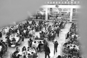 該校怡園餐廳28張餐桌上,羊肉火鍋、三鮮鍋?zhàn)、牛肉煲……擺得滿滿當(dāng)當(dāng),前來賀歲的團(tuán)省委和各高校及愛心企業(yè)代表挨桌敬酒,給每位同學(xué)發(fā)了200元紅包。