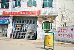 在位于該縣城北部的遂平縣實驗小學門口,記者看到,該校大門緊閉,有人在大門里面坐著,不時警惕地注視著外面來往的人。校門口的一側掛著“五星級學校”、“管理一級學!钡扰谱。大門外的墻上寫著“高高興興上學 平平安安回家”的大紅標語,但卻已斑駁了。