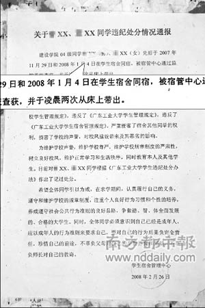 廣州大學(xué)城某工業(yè)大學(xué)通報處分了一對學(xué)生情侶