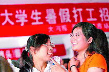 雖然勤工儉學不適用于《勞動合同法》,但不少公司卻很喜歡招用在校學生為他們打工。易博說:“招聘在校大學生作為促銷員,一是因為他們?nèi)巳杭,幾天時間就能招到一二百人;二是在校大學生有熱情,社會經(jīng)驗比較簡單,不會提額外要求給企業(yè)添麻煩。”