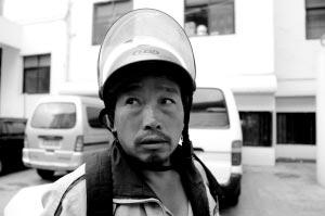 這名中年男子就是胡平的父親,但胡先生正要接受采訪時,被工作人員載上電動車快速離去。
