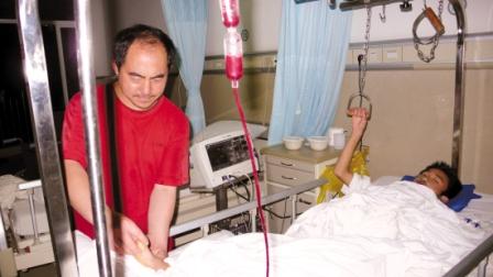 他是北川一中高一學(xué)生,地震時被倒塌的教學(xué)樓壓住了雙腿,一壓就是16個小時。被送到廣州時,他的雙腿組織基本壞死,壞死的肌肉分泌出毒素,導(dǎo)致他出現(xiàn)急性腎功能衰竭、中毒性心肌炎、中毒性腦病、急性胰腺炎等并發(fā)癥。