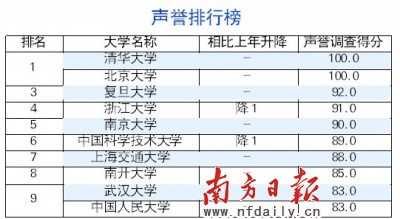 雖然清華和北大的地位難以撼動(dòng),但在綜合榜單中,第三到第十名的位置還是處于一種“動(dòng)態(tài)的平衡”中,去年排名第五的浙江大學(xué)超越了南京大學(xué)和復(fù)旦大學(xué),躍居第三,中國科學(xué)技術(shù)大學(xué)、南京大學(xué)、復(fù)旦大學(xué)、上海交通大學(xué)、北京師范大學(xué)、哈爾濱工業(yè)大學(xué)、南開大學(xué)、中國人民大學(xué)(含并列)依次排名第四至第十。去年排名第十的中山大學(xué)今年排名第18。