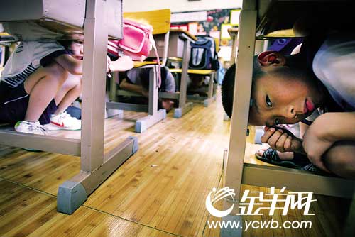 小學(xué)生演練防震屢屢“笑場” 練三遍才認真(圖)