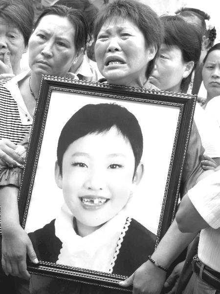 抱著孩子遺像家長悲慟欲絕