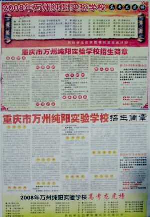 純陽實(shí)驗(yàn)學(xué)校在當(dāng)?shù)孛襟w刊登的廣告