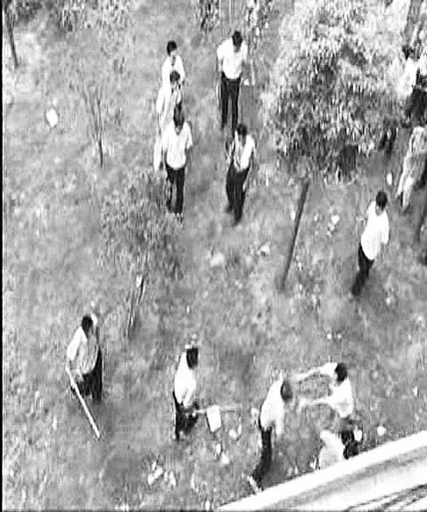 記者在光碟中看到,在文都教學(xué)樓下的草坪上,幾名穿保安制服的男子手持鐵棒,毆打一名男子,幾人上前勸架,也被對方棒擊。雙方相互拉扯,后來人越來越多,拳打腳踢的場面隨處可見。整個過程有20多分鐘。