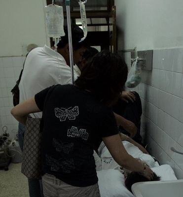 昨日下午2時40分,長海醫(yī)院洗胃室內(nèi),身穿印有復旦實驗中學字樣校服的賈偉躺在病床上,已經(jīng)蘇醒,但十分虛弱,無力說話。他的奶奶和父母守護在病床前,默默注視著。