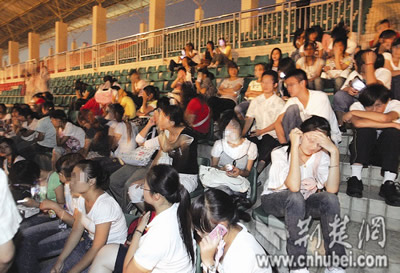 記者當(dāng)即趕到位于江夏區(qū)大花嶺的該校,學(xué)生們的情緒很激動(dòng)!罢猩(jiǎn)章上明明有護(hù)理學(xué)專(zhuān)業(yè),現(xiàn)在為何突然取消?”王同學(xué)說(shuō),他們就是沖著該專(zhuān)業(yè)來(lái)讀書(shū)的,現(xiàn)在要他們轉(zhuǎn)其他專(zhuān)業(yè),他們無(wú)法接受。直到昨晚7時(shí)許,近200名學(xué)生坐在操場(chǎng)的看臺(tái)上不愿離去(如圖)。一名姓嚴(yán)的家長(zhǎng)聞?dòng)嵹s來(lái),他氣憤地說(shuō):“校方太不負(fù)責(zé)任了,事先沒(méi)有任何溝通,孩子們?cè)跄懿浑y受!”