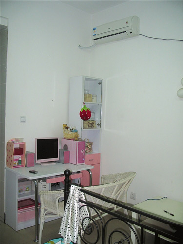沒有了隔壁寢室的四張上下鋪床、用卡通床單代替了學校統(tǒng)一發(fā)的單色床單,還安裝上了空調(diào)和小沙發(fā),這間“粉紅小屋”的主人家劉月(化名)很喜歡她親手“裝修”的這間寢室,“很溫馨、很舒適”。