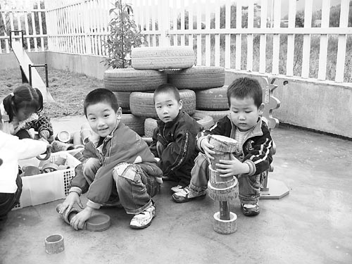 在一個(gè)叫橫山塢的小山村,別墅式的幼兒園讓每個(gè)參觀者駐足。幼兒園的院子里,50多個(gè)孩子正在竹子搭成的攀登架、平衡木上爬上爬下,嬉戲玩鬧。教室里,整潔干凈,用各種竹子做成的玩具、教具一應(yīng)俱全。
